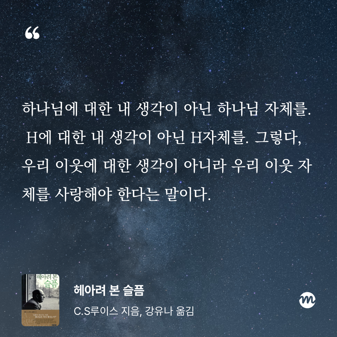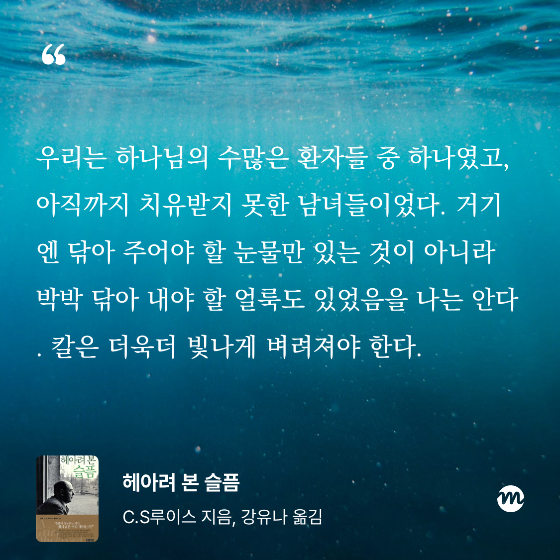 22-23 너희 눈은 너희 몸의 창문이다. 네가 경이와 믿음으로 눈을 크게 뜨면, 네 몸은 빛으로 가득해진다. 네가 탐욕과 불신으로 곁눈질하고 살면, 네 몸은 음습한 지하실이 된다. 네 창에 블라인드를 치면, 네 삶은 얼마나 어두워지겠느냐!