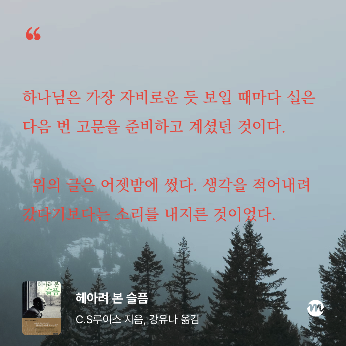 1-2 하나님, 하나님, 나의 하나님! 어찌하여 나를 이토록 외딴 곳에 버려두십니까? 고통으로 몸을 웅크린 채 종일토록 하나님께 부르짖건만 응답이 없습니다. 한 마디도. 나, 밤새 하나님께 부르짖으며 몸을 뒤척입니다.