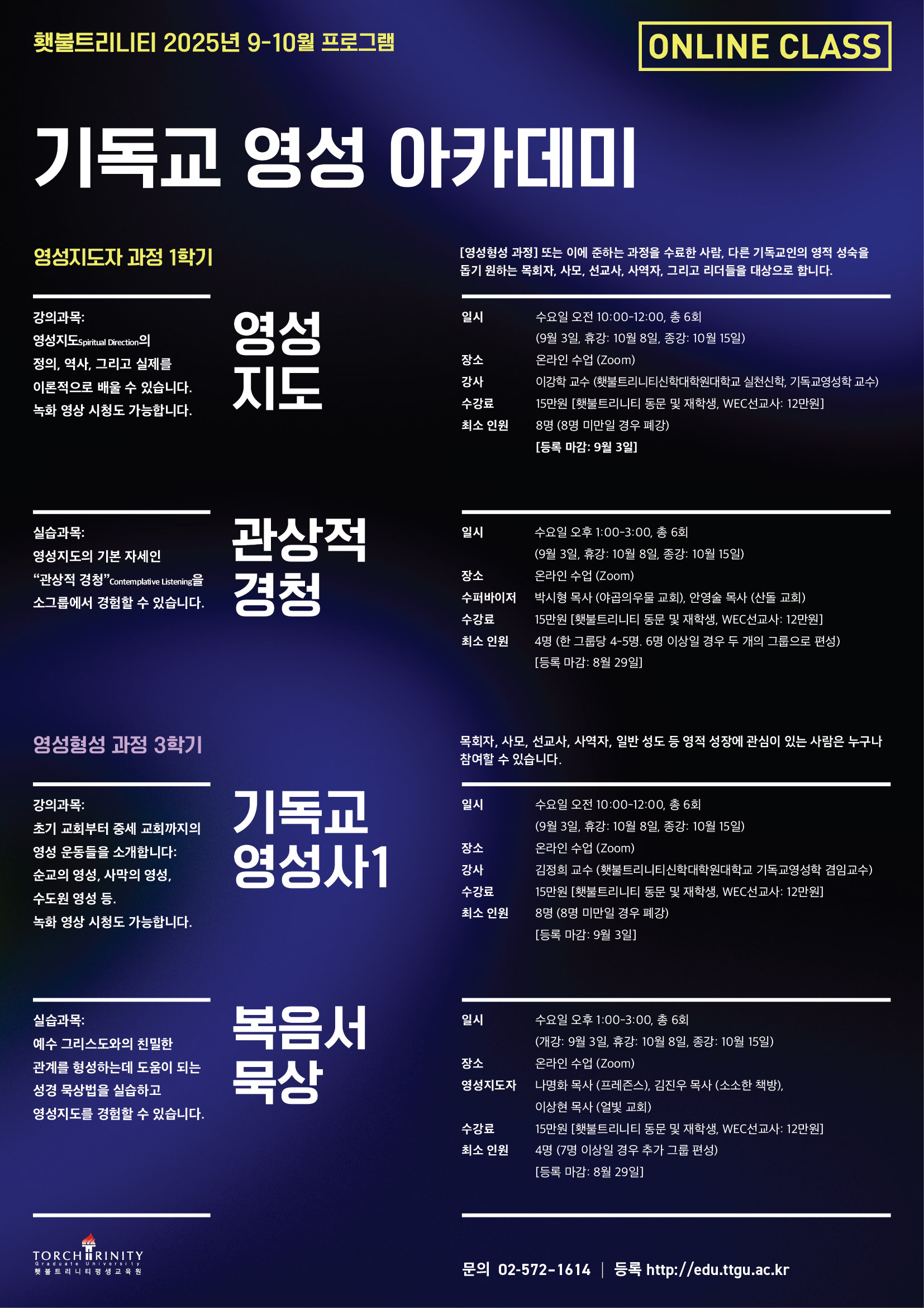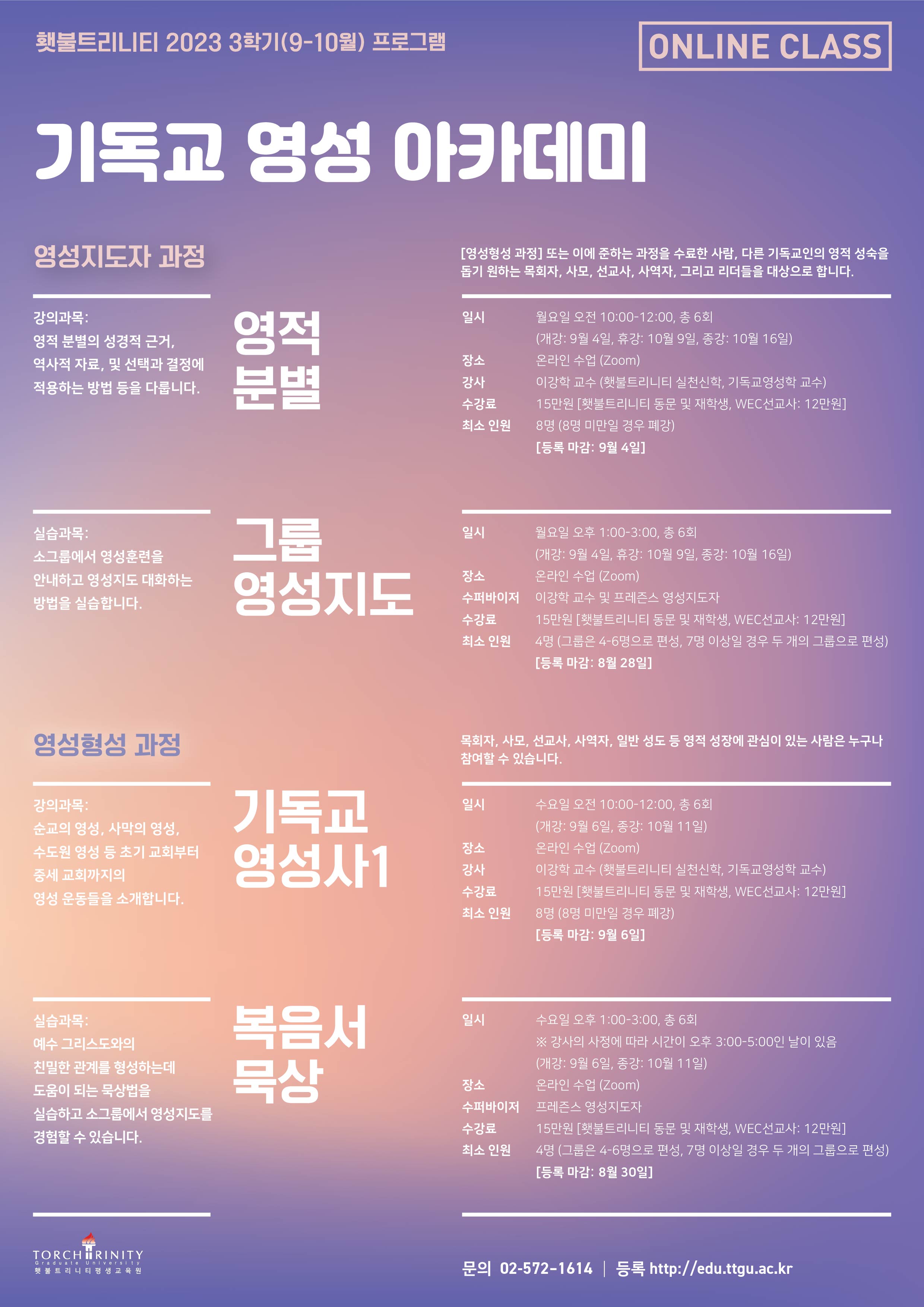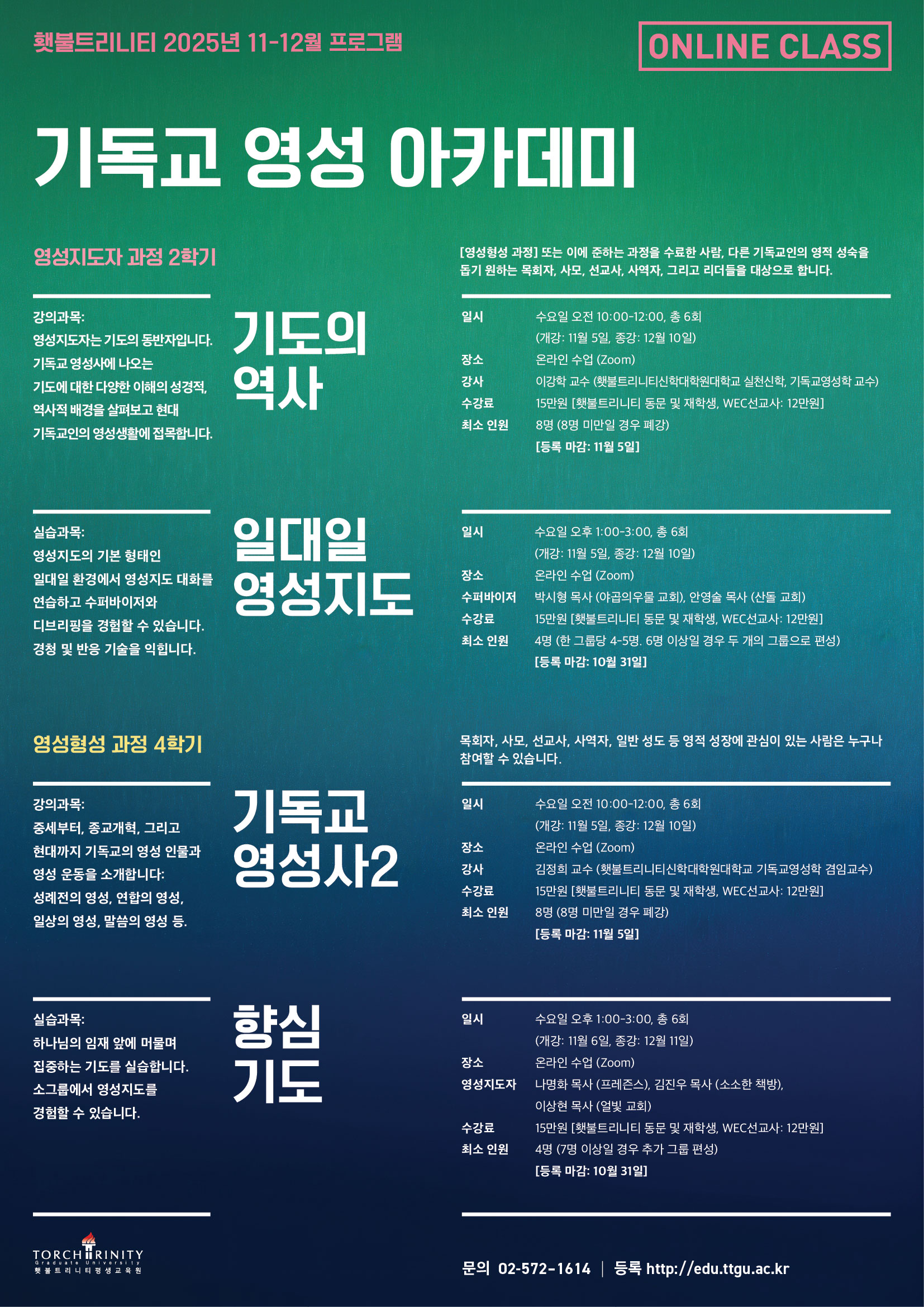 . 강의 과목 : 영성지도, 기도의 역사, 영적 분별, 영성지도 수퍼비전